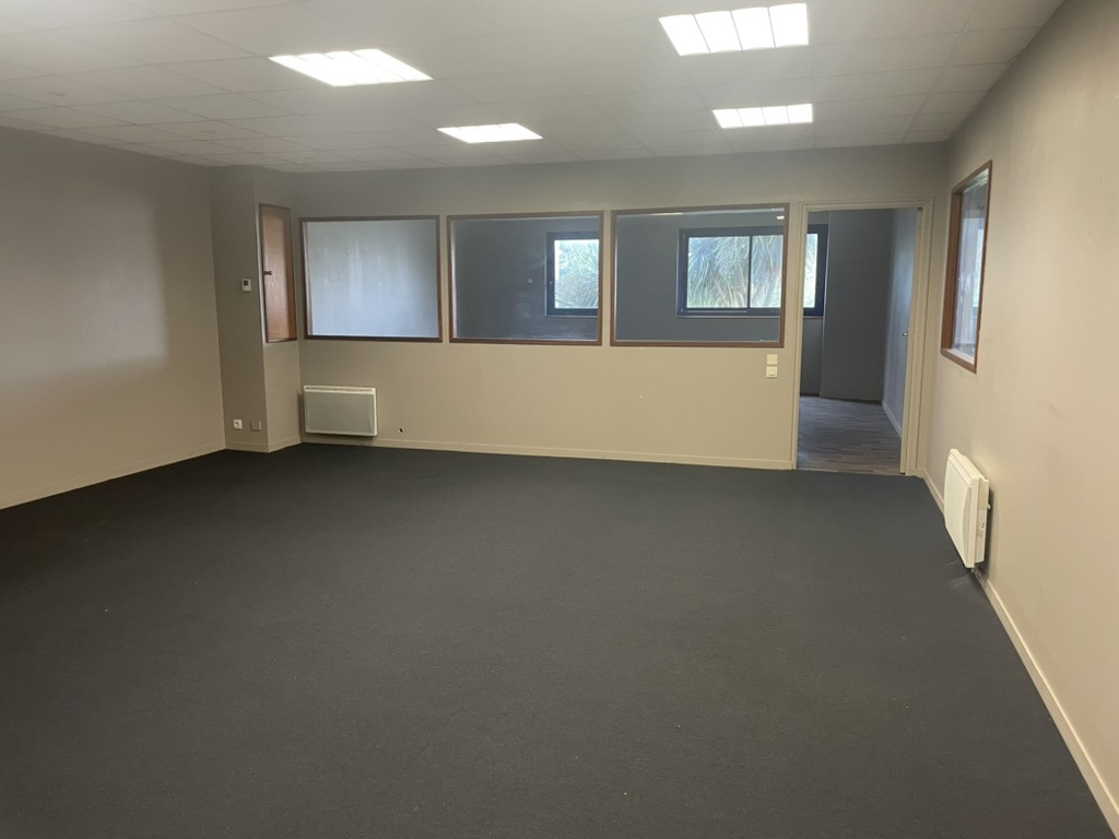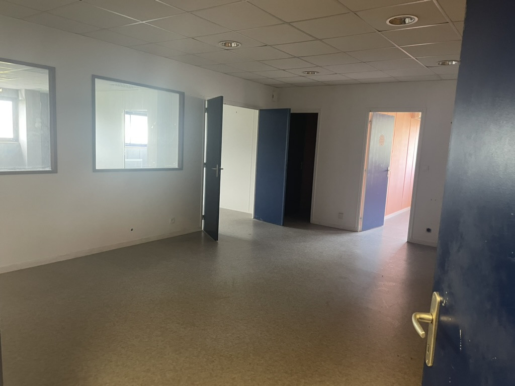 Plateau de bureaux situé au 1er étage d'un ensemble commercial aménagé en 2 open-space, 1 salle de réunion, 2 bureaux indépendants et une cuisine avec salle de pause.